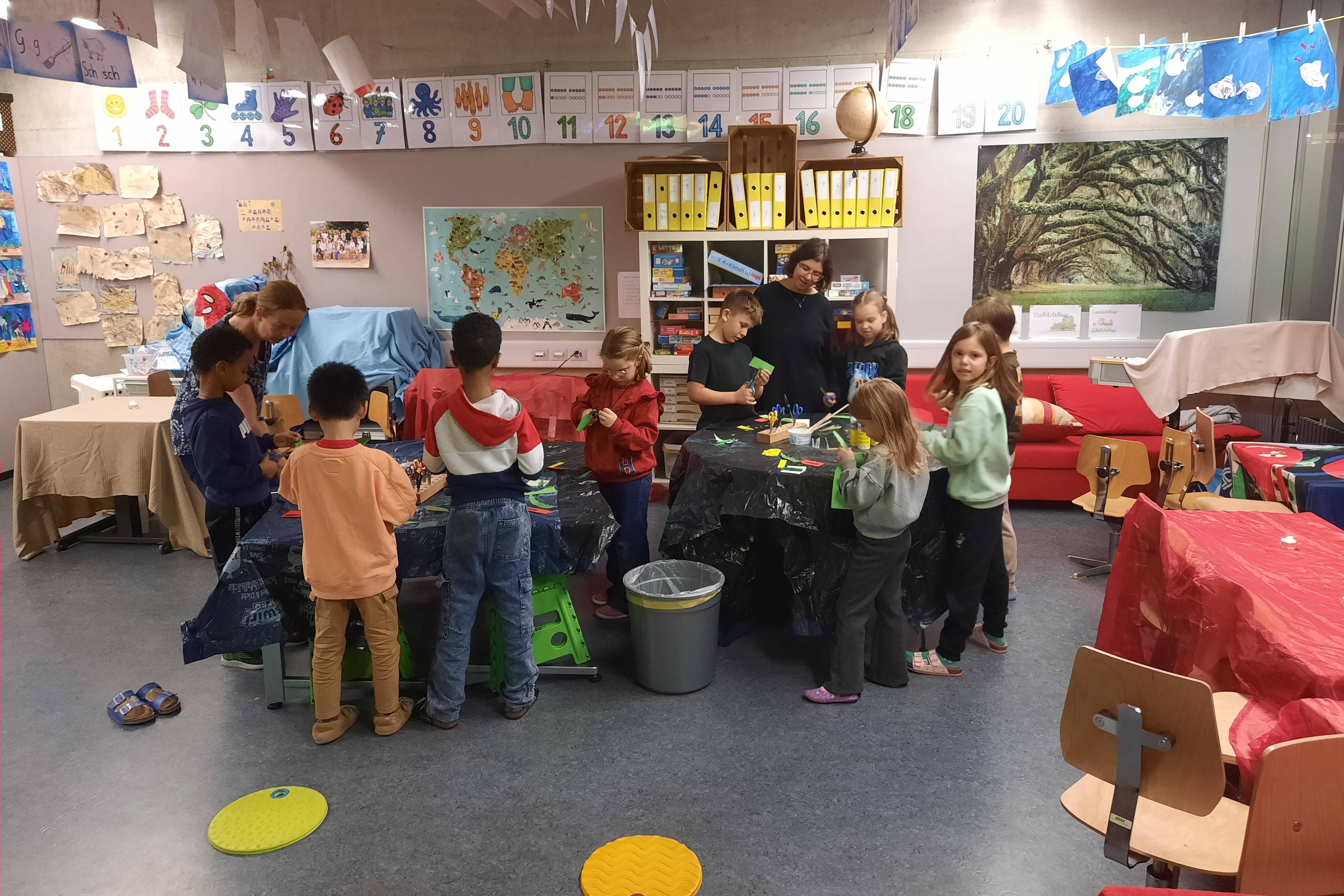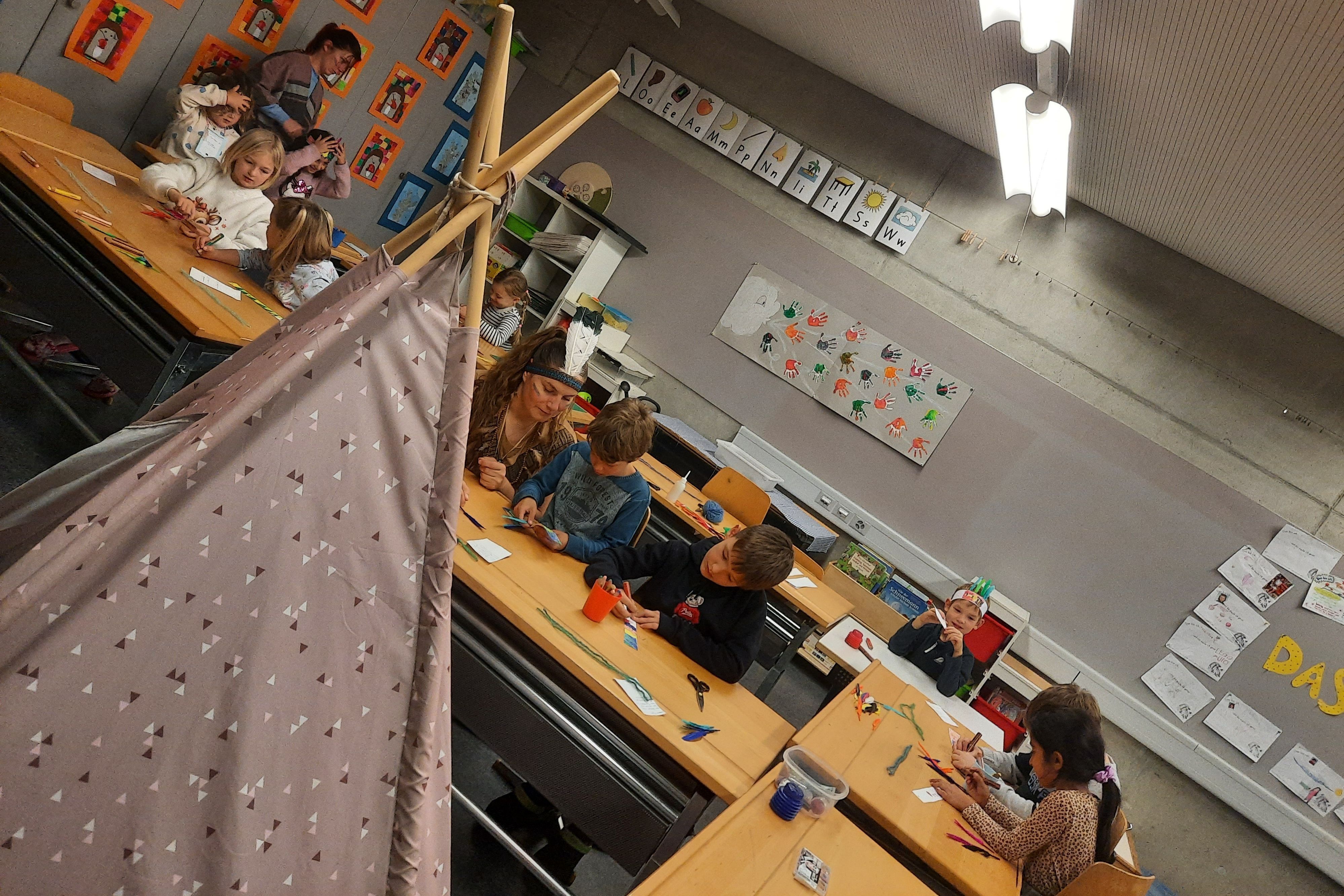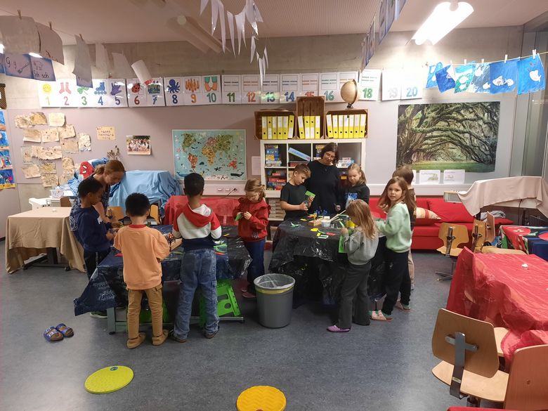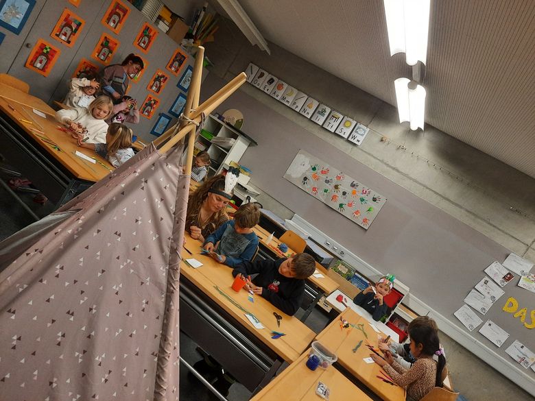 In allen Schulhäusern, Pfrundmatt 1 und 2, Güggel, Breite und Leimbach bereiteten die Lehrpersonen kreativ und abwechslungsreich diverse Angebote und Ateliers an. Viele verschiedene Geschichten wurden vorgelesen. Das Thema Zeitreise bot unglaublich viele Möglichkeiten. Von «Schälle-Ursli» bis «Science Fiction» hatte alles Platz und die Kinder konnten in Traumwelten eintauchen.