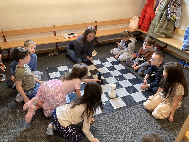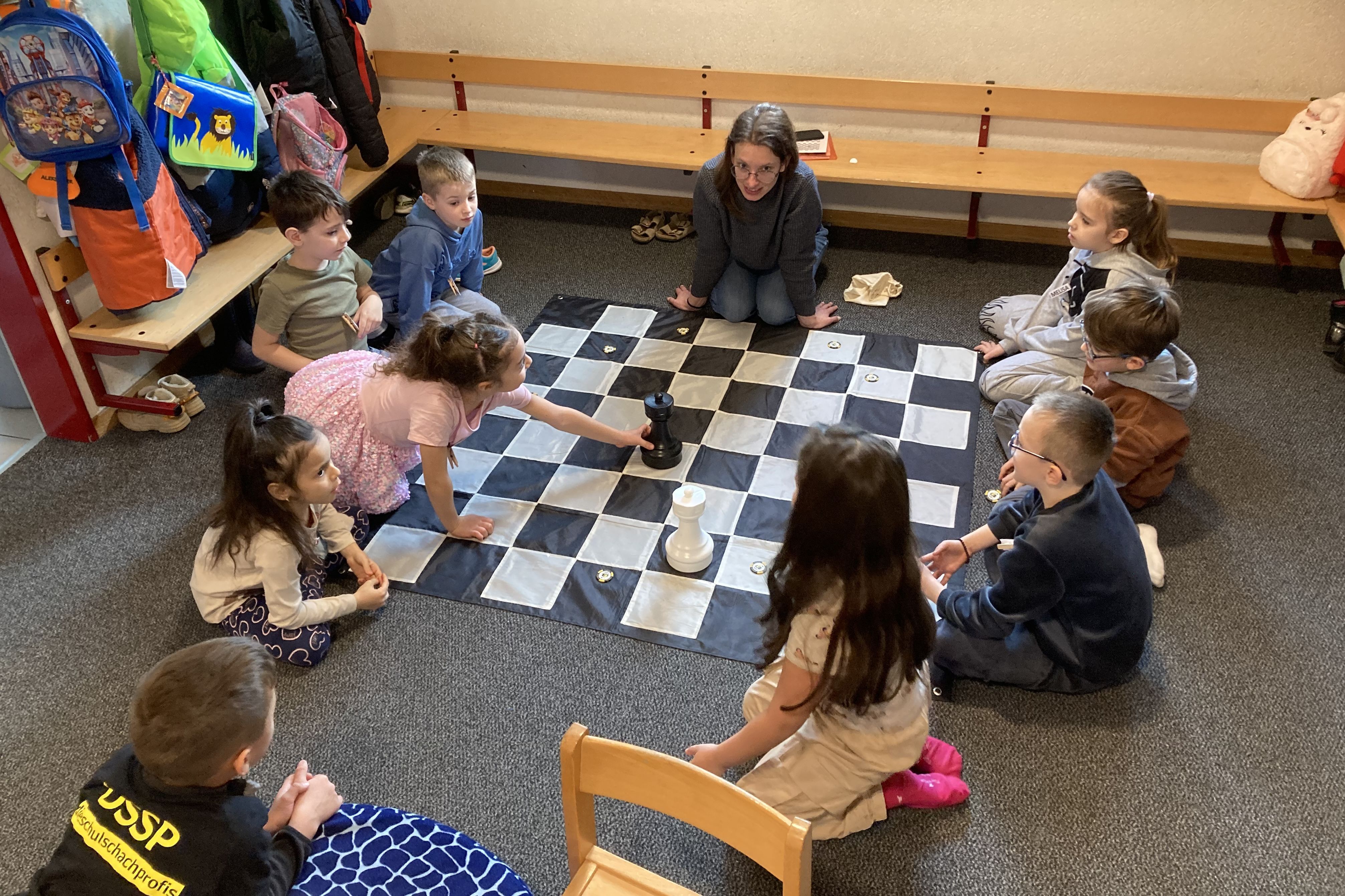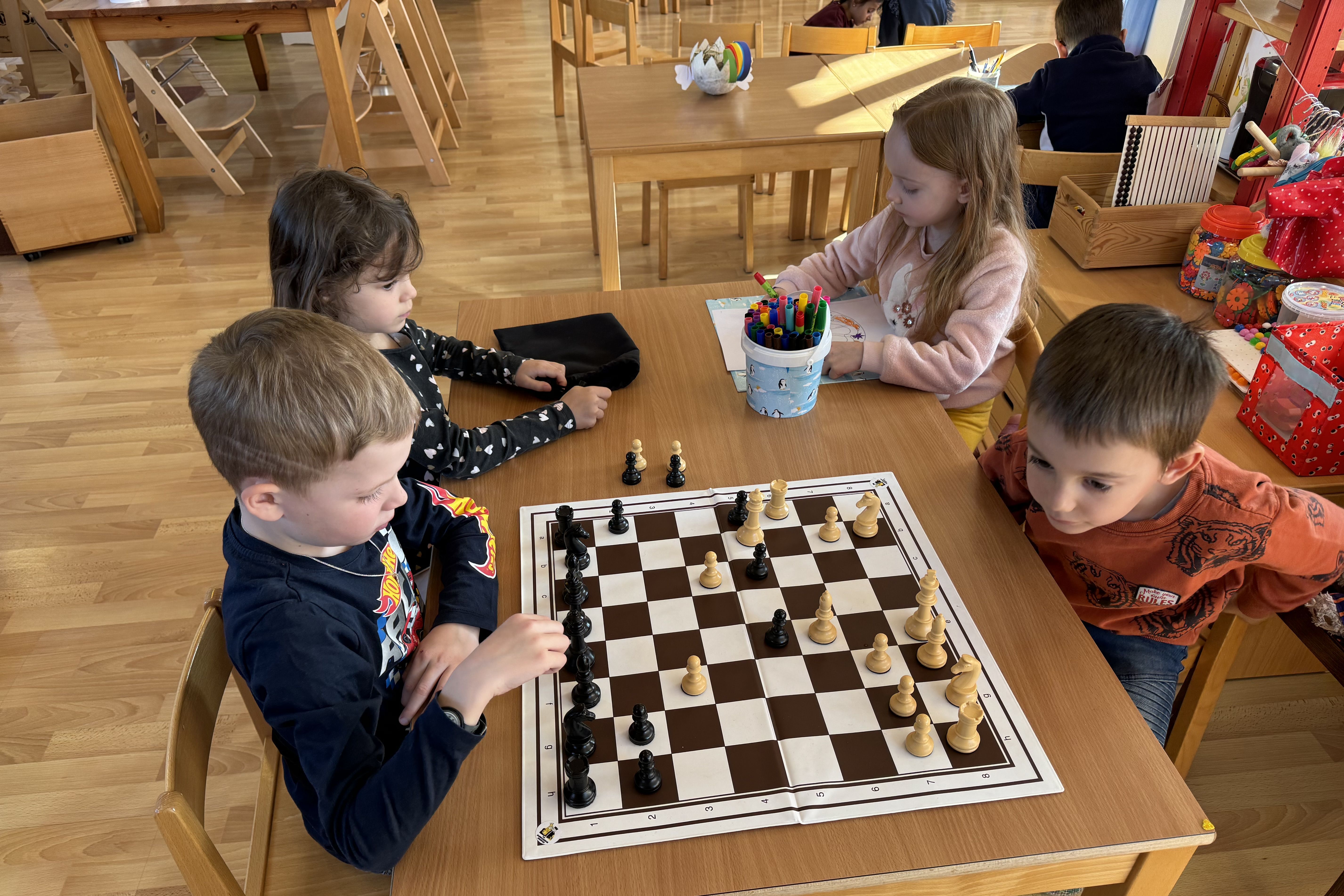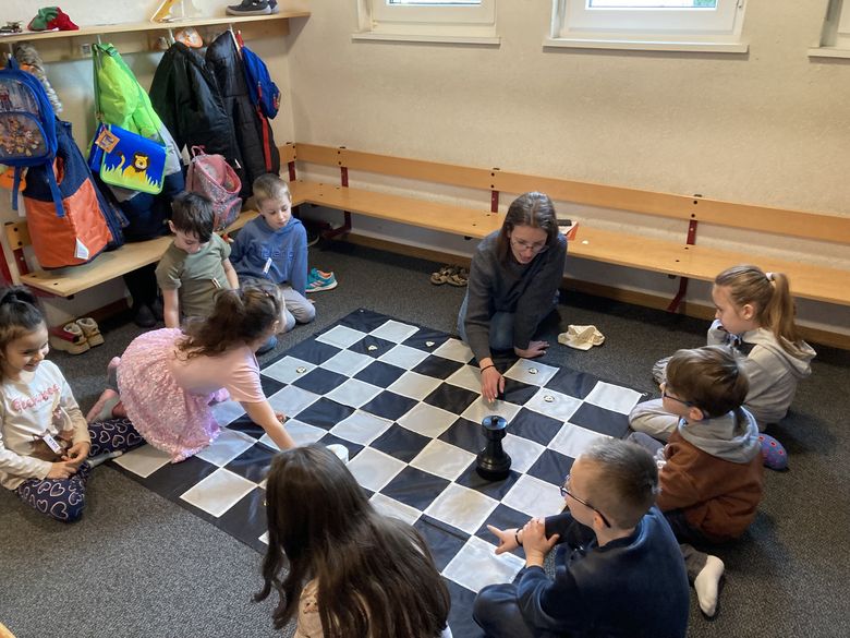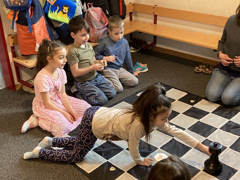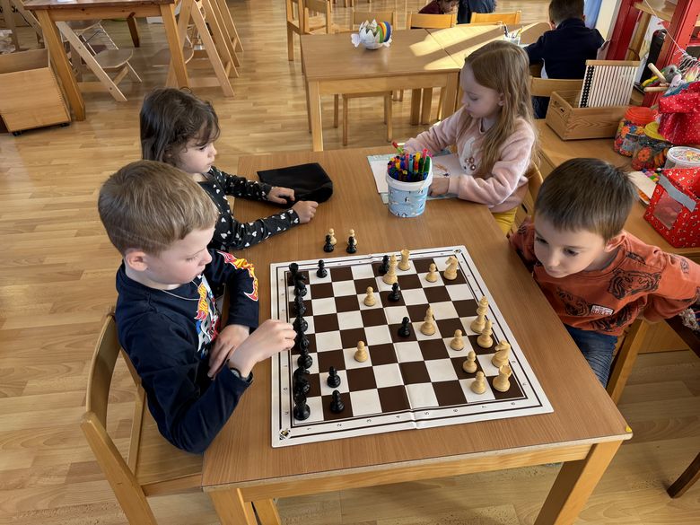 In verschiedenen Kindergärten wird auch nach Kursende weiterhin Schach gespielt.