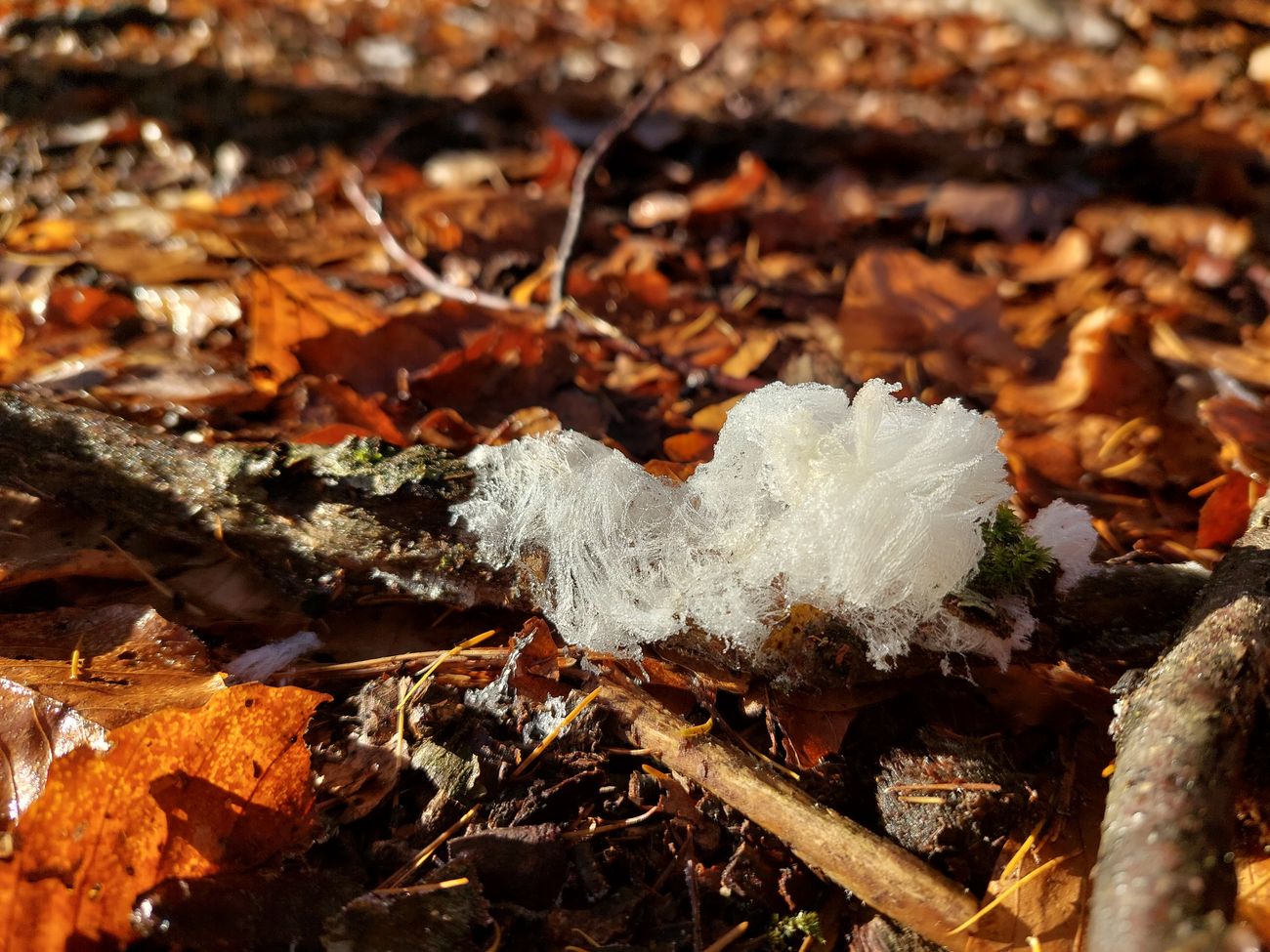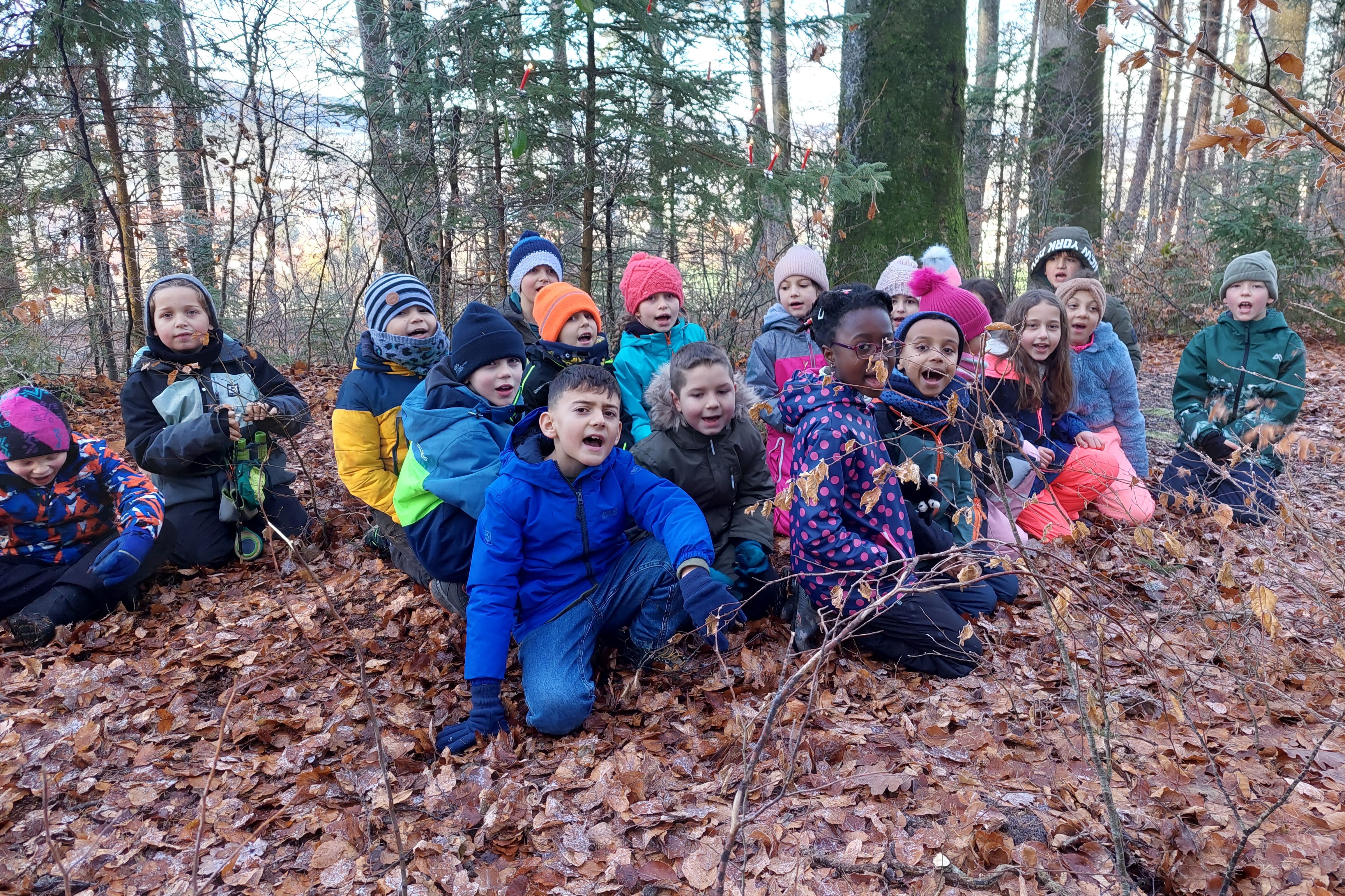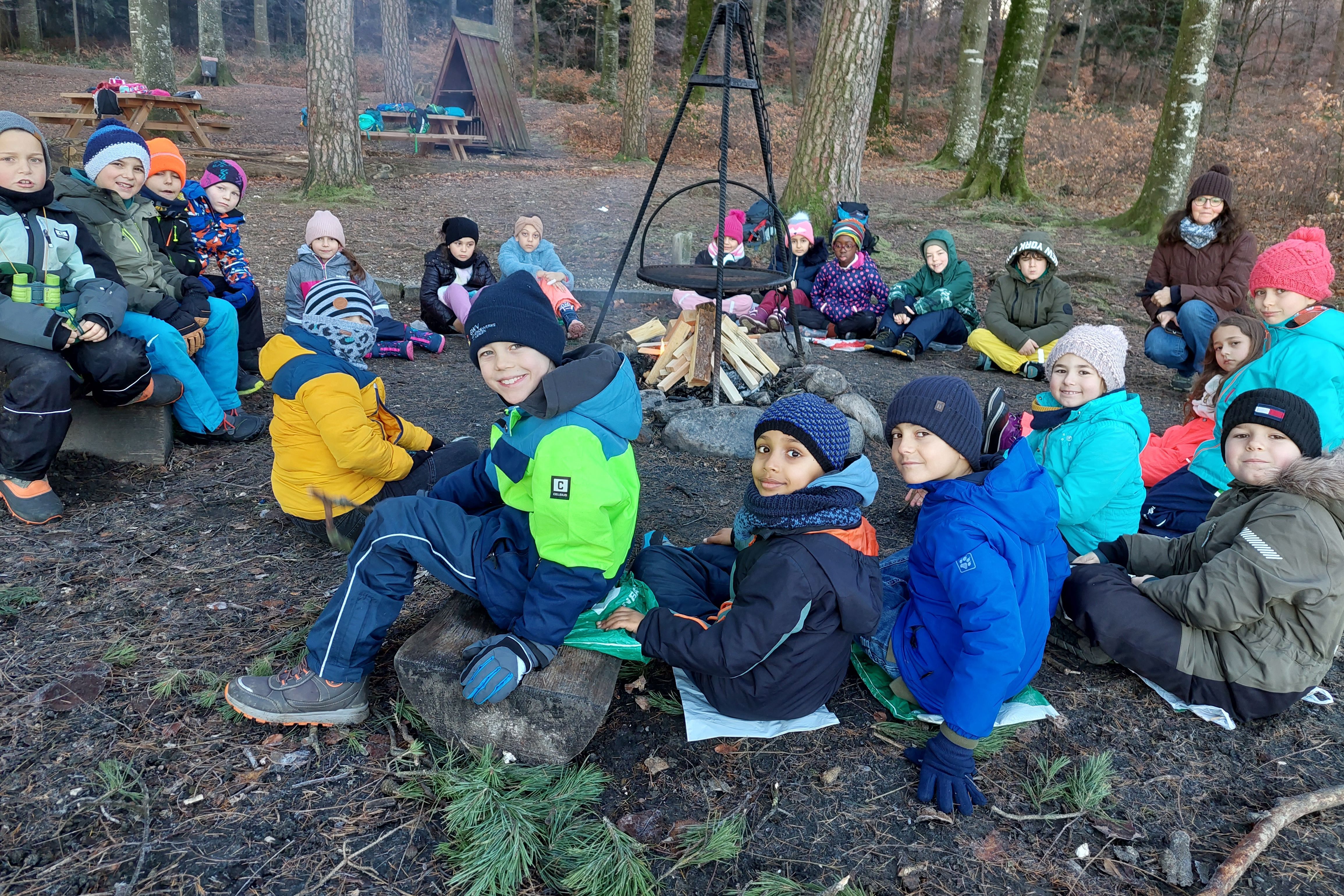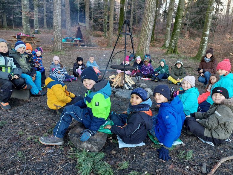 Die Kinder stellten selber aus Juteschnur mit Waldmaterial den eigenen Christbaumschmuck her. Zehn Kerzenhalter wurden mit Christbaumkerzen bestückt. Die Kinder sangen die geübten Weihnachtslieder und hörten eine Weihnachtsgeschichte. An einem grossen Feuer wurden Würste gebraten und man konnte sich aufwärmen. Der Wald war mit Raureif wie verzaubert. Auch Haareis konnten wir entdecken. Wir hatten viel zu staunen über die Kunstwerke der Natur. Die Klasse 2a und ihre Lehrpersonen kehrten glücklich zurück.