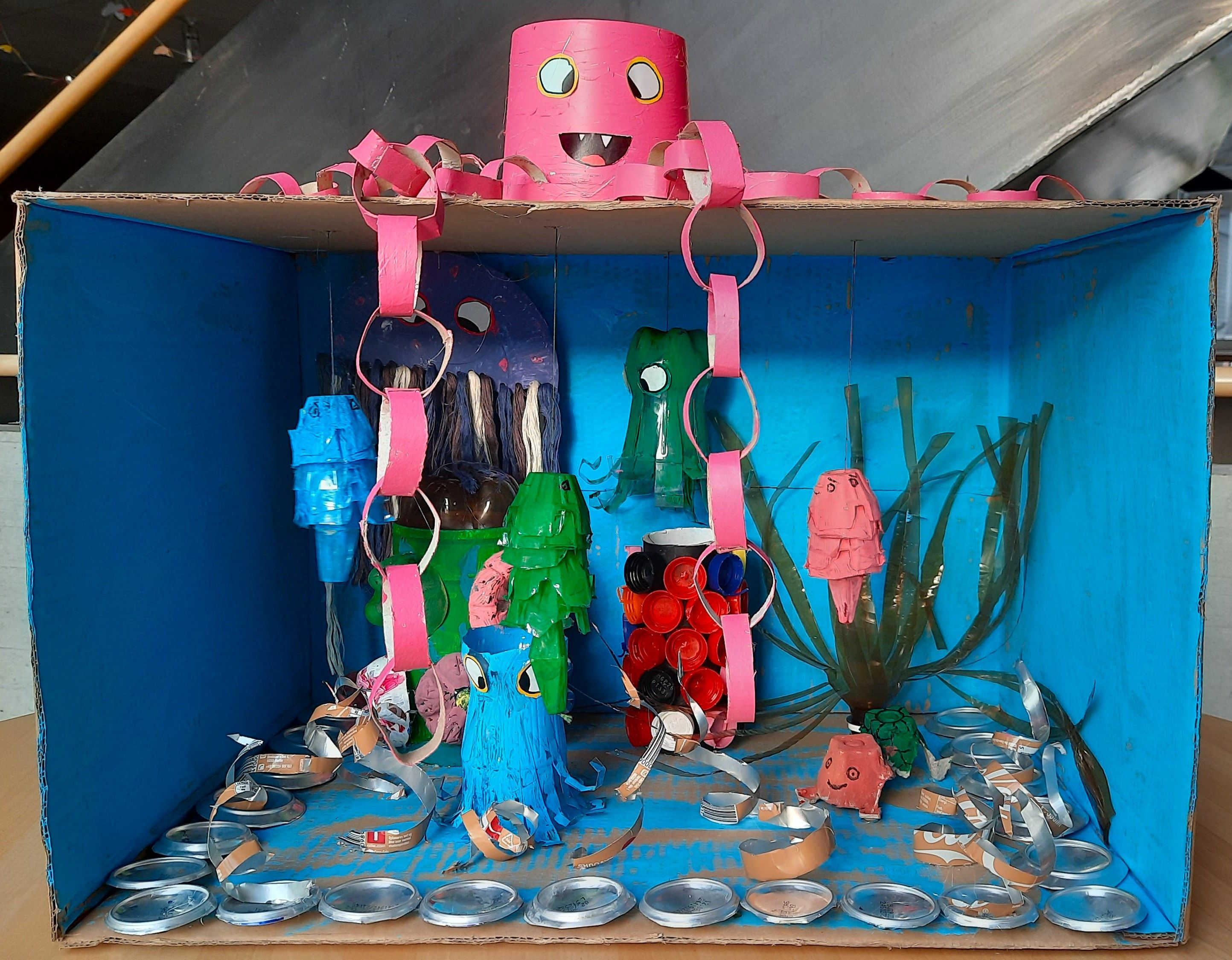 Die Aufgabe lautete, aus scheinbar nutzlosen Abfallmaterialien – wie Karton, Plastik, Papier, Dosen oder Stoffresten – etwas völlig Neues entstehen zu lassen: ein Fantasiewesen, eine Skulptur, ein Gebrauchsgegenstand oder einfach etwas, das Freude macht.